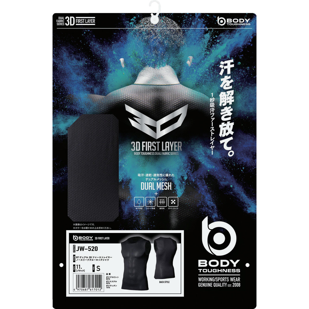 おたふく JW−520 11.BK 3D ノースリーブクルーシャツ  S JW520-BK-S