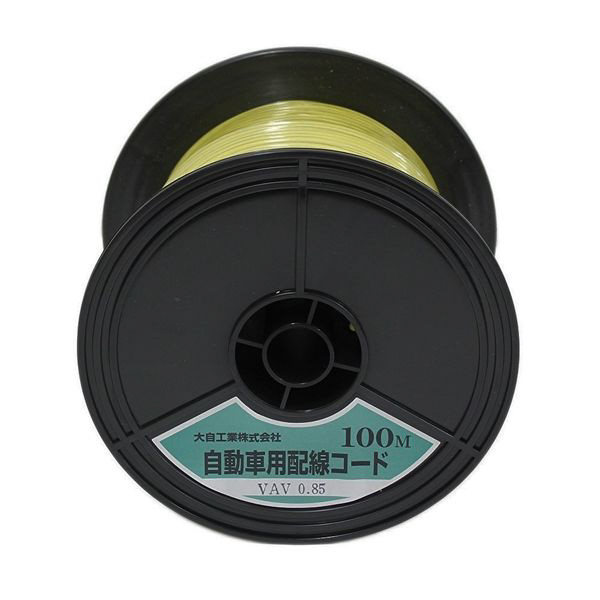 自動車配線シングルコード(二重被覆) VAV0.85平方mm 100mスプール巻 黄 VAV0.85-Y-100