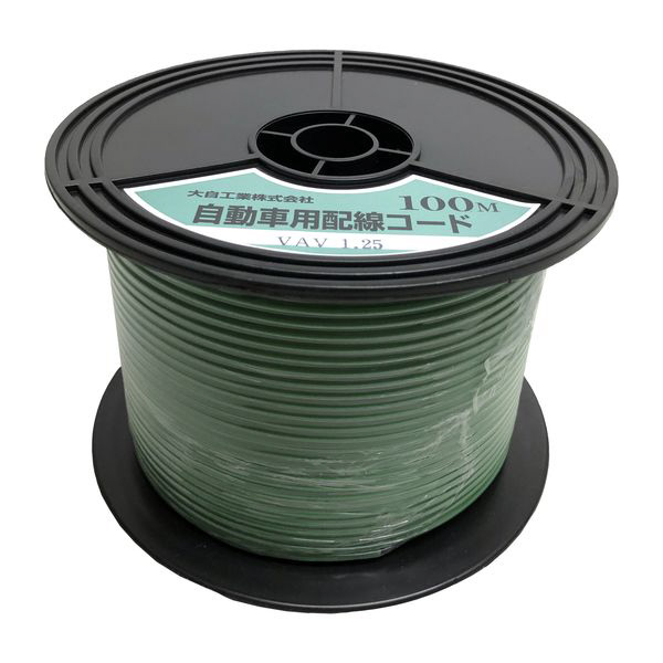 自動車配線シングルコード(二重被覆) VAV1.25平方mm 100mスプール巻 緑 VAV1.25-G-100