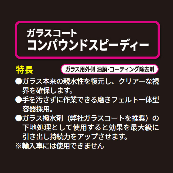 29983 クリンビュー 車用 ガラス油膜とり剤 コンパウンドスピーディー 内容量:90g ガラスコーティング&被膜除去剤 呼番:D-62 29983