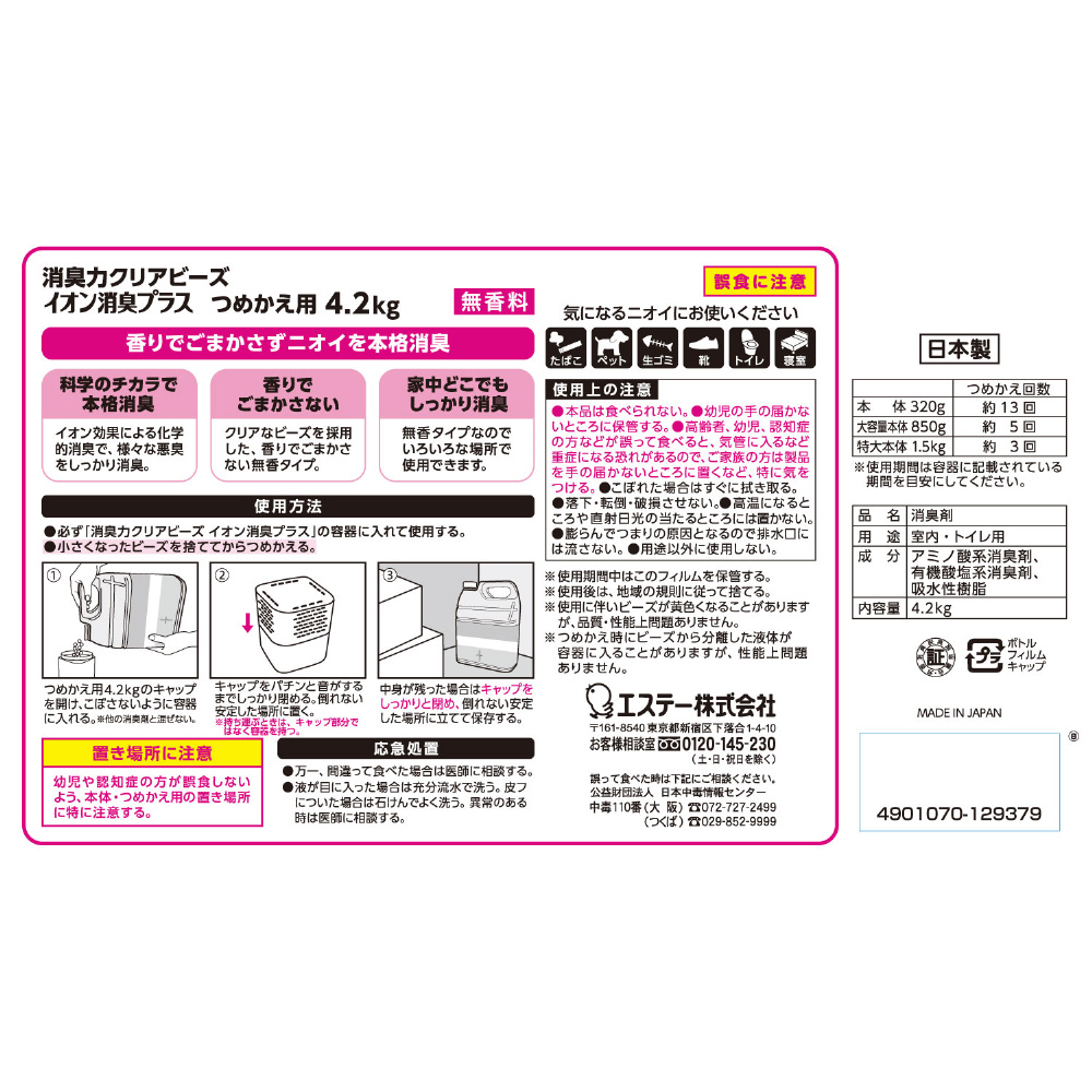 消臭力クリアビーズ イオン消臭プラス つめかえ 無香料 4.2kg