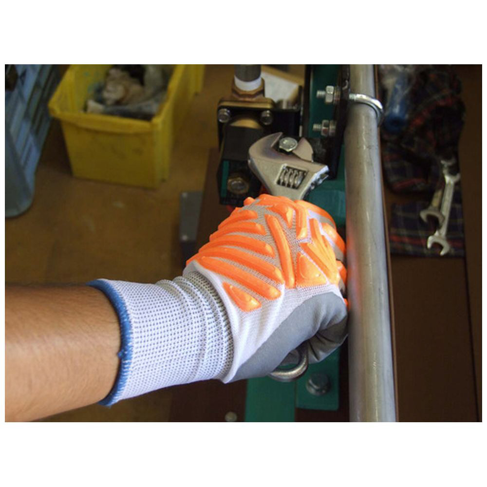 手甲のプロテクターがちょっとした不意打ちから手を守り、打撃や衝撃を緩和するので、安全に作業が行えます。
