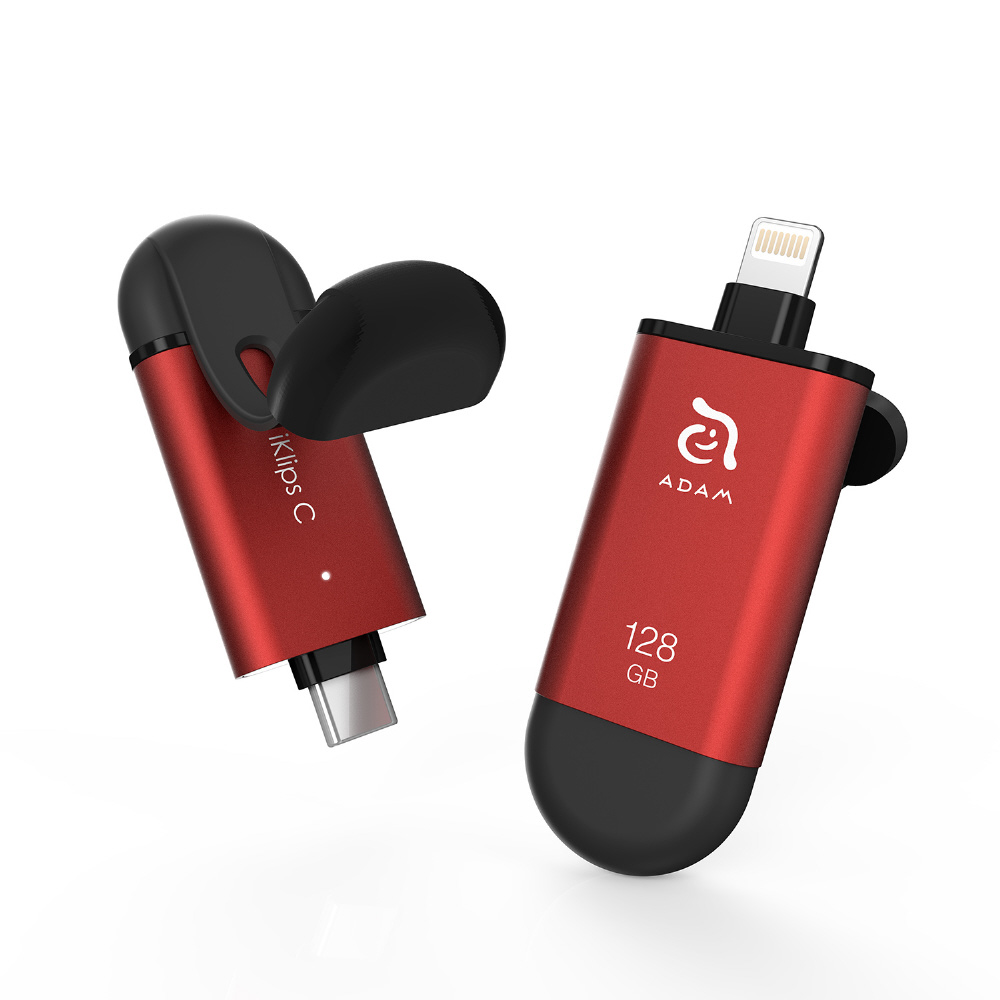USBメモリ iKlips C レッド ADRAD128GKLCRDJ [128GB /USB3.1 /USB TypeC+Lightning /キャップ式]