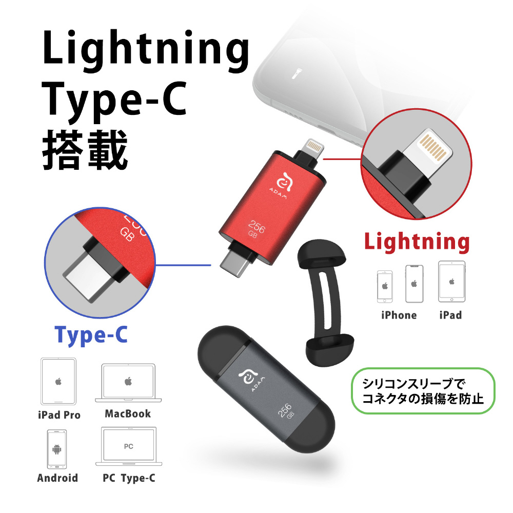 Apple Lightning / Type-C(USB-C)デュアルインターフェースUSBメモリ