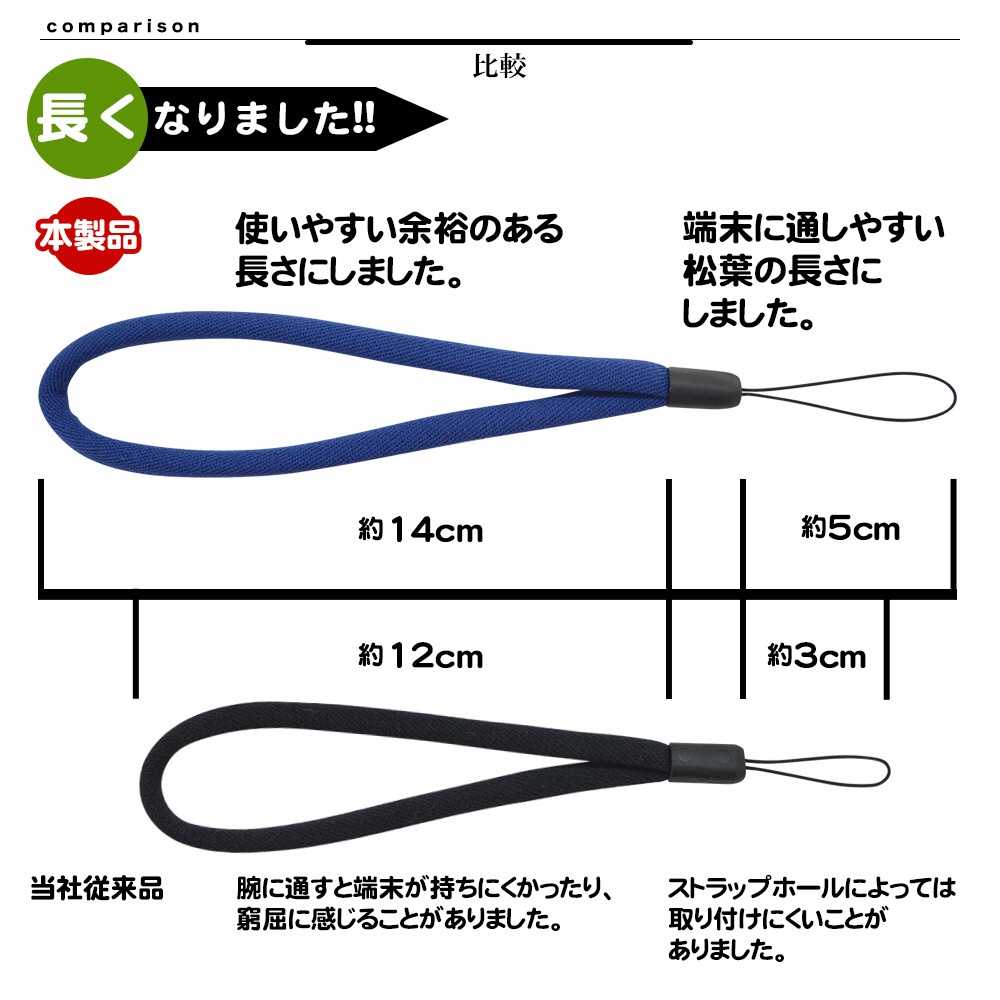本製品は装着する端末を傷つけにくい金属不使用、丸ひもタイプのハンドストラップです。