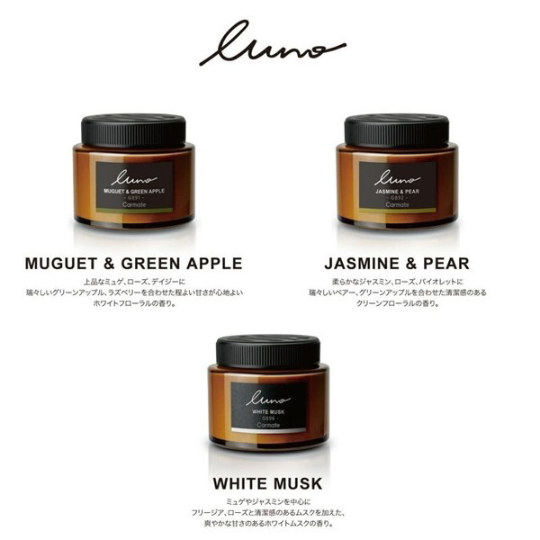 Luno ルーノ 車用 お部屋 消臭 芳香剤 ゲル 置き型 ホワイトムスク N. 天然アロマオイル 配合 G896