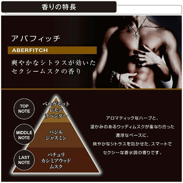 ●アバフィッチ:濃厚なベースに爽やかなシトラスを効かせた、スマートでセクシーな香り