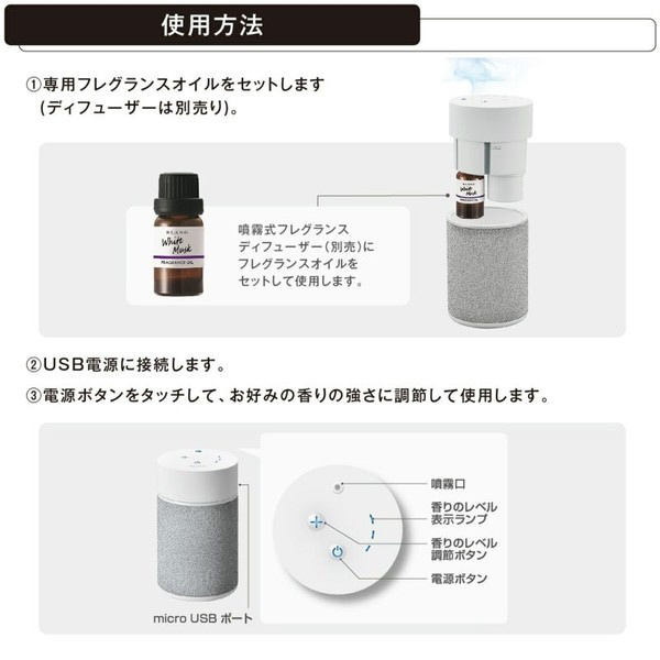 ●霧式フレグランスディフューザーでオイルが無くなるまで均一に香るように処方されています。