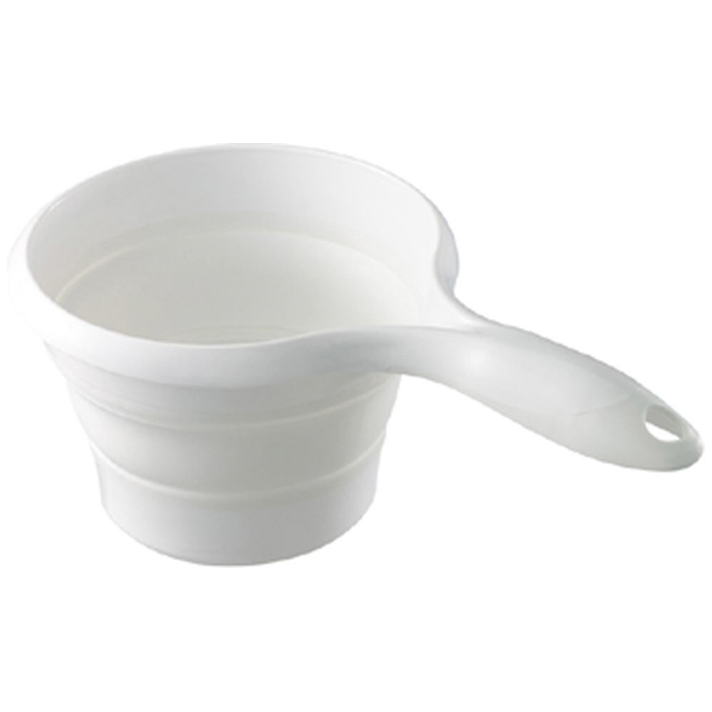 やわらかい素材の手おけ。 コンパクトにたためて収納できます。 1.2Lの容量。