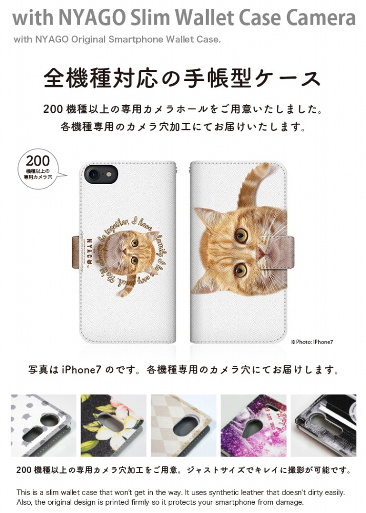 with NYAGOはお洒落でかわいい人気の猫デザインブランド。かさばらないスリム手帳型ケース。