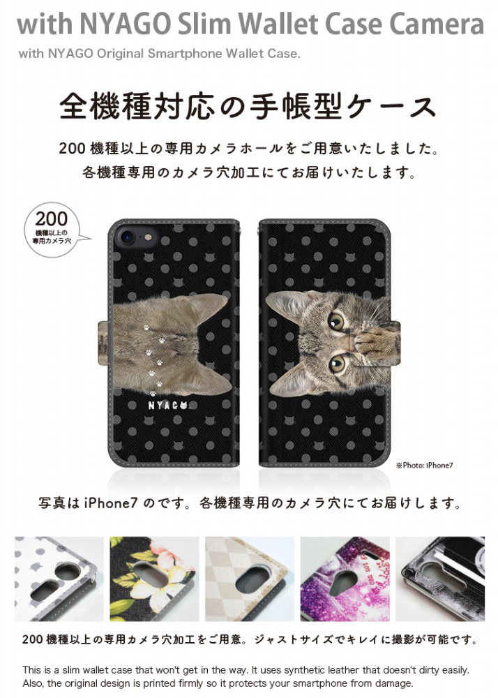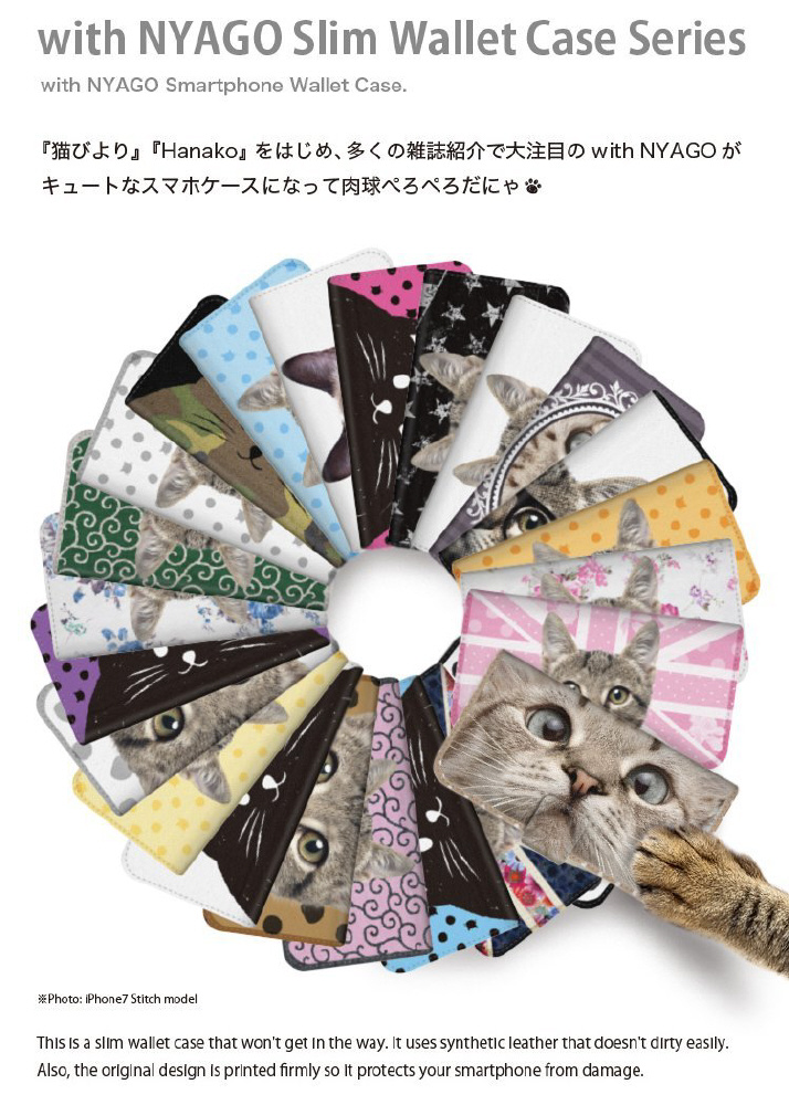 with NYAGOはお洒落でかわいい人気の猫デザインブランド。かさばらないスリム手帳型ケース。