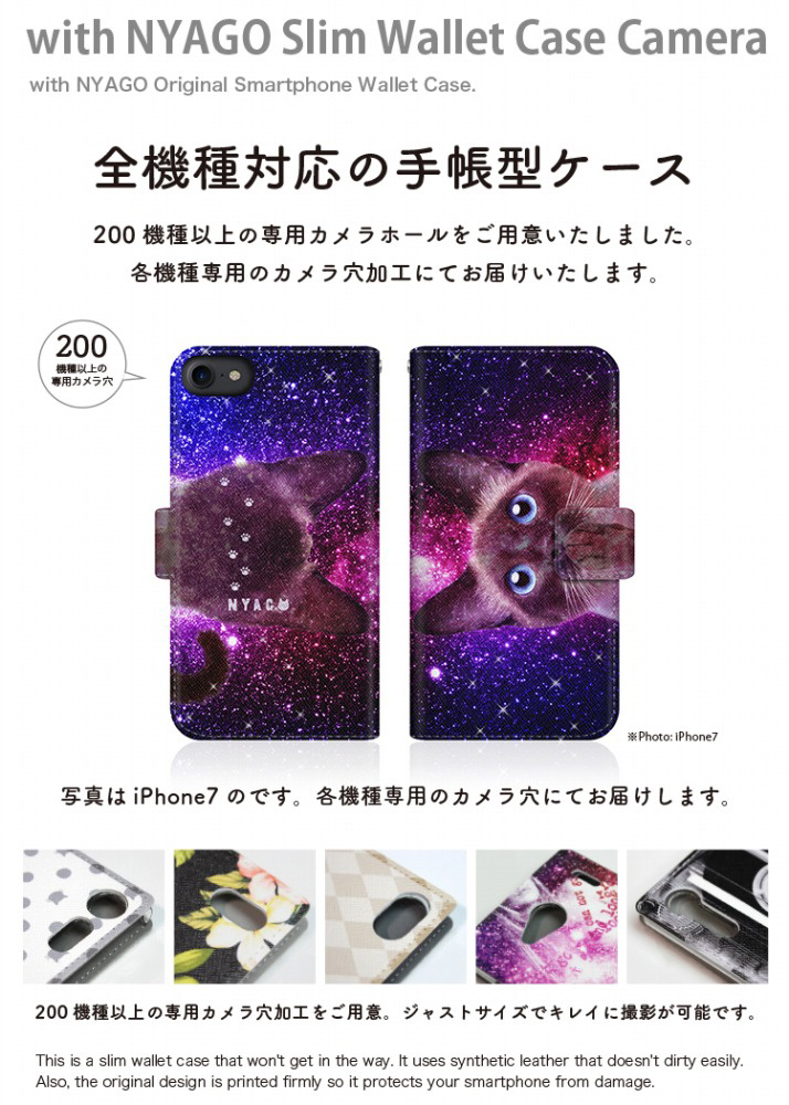 with NYAGOはお洒落でかわいい人気の猫デザインブランド。かさばらないスリム手帳型ケース。