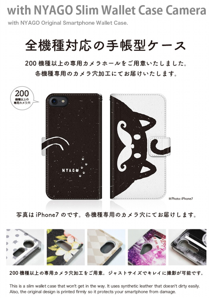 with NYAGOはお洒落でかわいい人気の猫デザインブランド。かさばらないスリム手帳型ケース。
