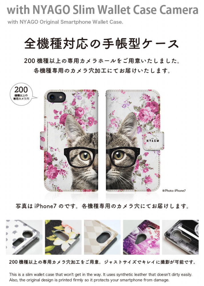 with NYAGOはお洒落でかわいい人気の猫デザインブランド。かさばらないスリム手帳型ケース。
