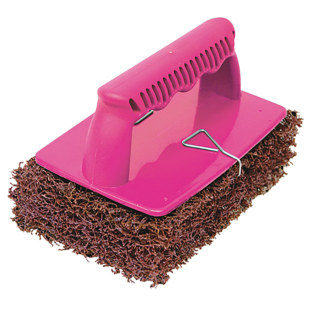 握りやすいグリップ付きの交換式ナイロンタワシ。