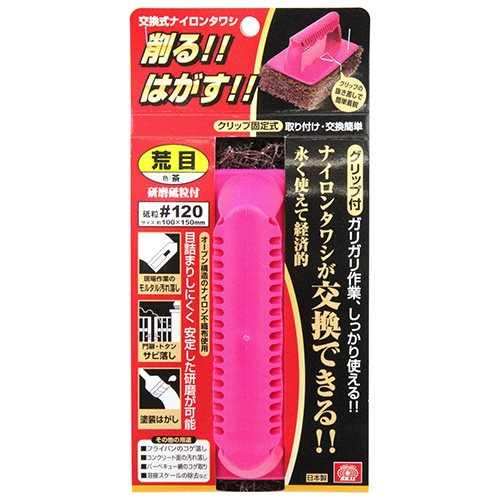 グリップ付で、しっかり握りながら作業が出来るので、ガリガリ削ることが出来ます。ナイロンタワシは交換式になっているので、摩耗してきたら、取り替えることが出来ます。