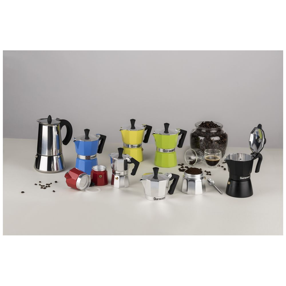 家庭で本格的なイタリアンコーヒーが味わえる。沸騰した水の蒸気圧でコーヒーを抽出する方式の直火式のエスプレッソコーヒーメーカー。使い方は簡単、市販のコーヒー挽豆をフィルターに充填し、下部のボイラー容器に水を入れて直火にかけると、あっという間に美味しいコーヒーができる。また、アルコールランプやアウトドアコンロ等でも抽出できるため、キャンプや登山など屋外で淹れることも可能である。