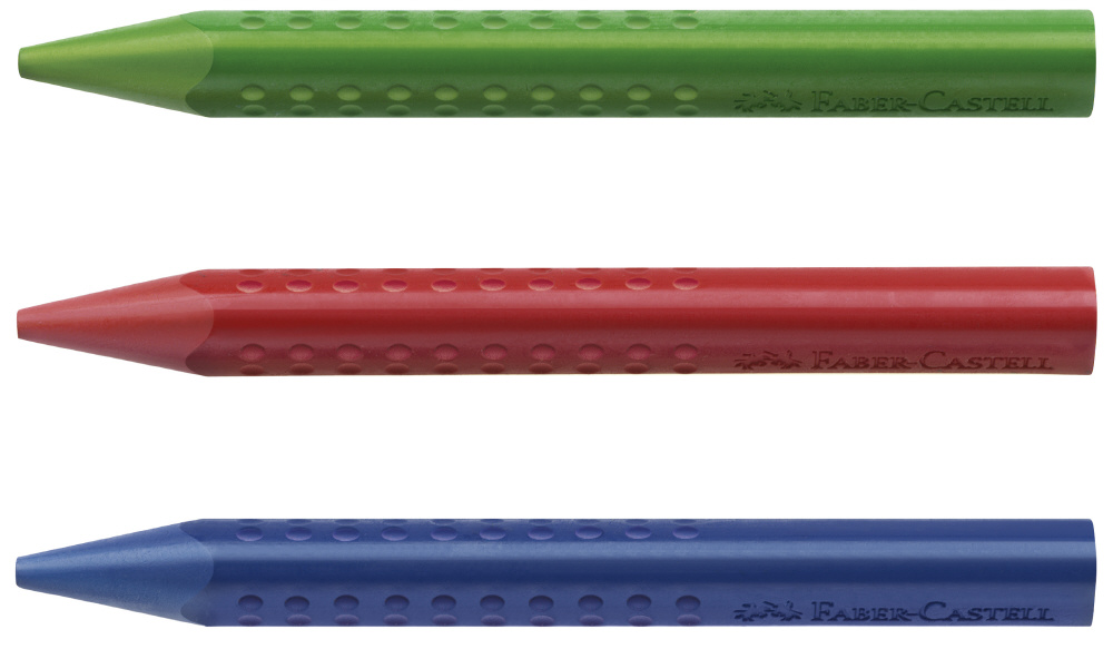 ■お子さまが握りやすい、人間工学に基づいた三角軸のジャンボサイズのグリップクレヨン12色