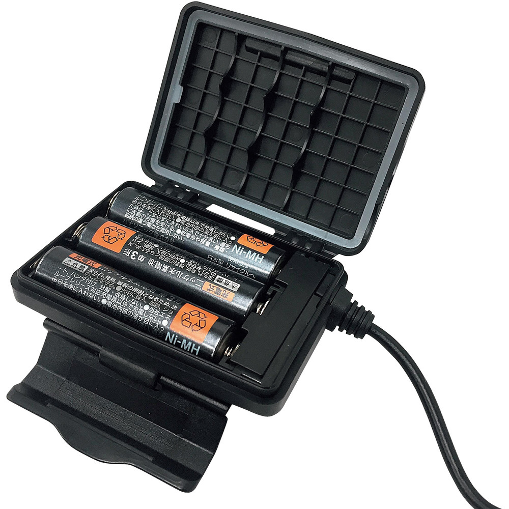 単三形乾電池3本で、最長25h(50lmの場合)使用可能です。