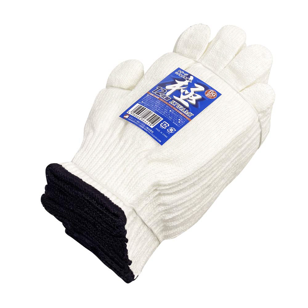 軍手 エコ 「極」 紺 12組 ホワイト 2027392 [フリーサイズ /滑り止めなし]