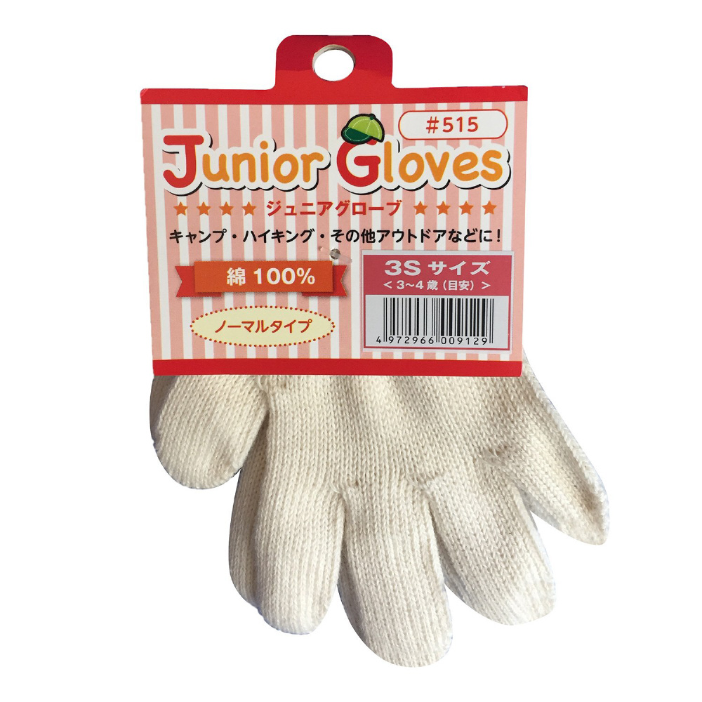 子供用軍手。キャンプ・ハイキング・その他アウトドアなどに!。目安:3〜4歳用。綿100%使用のため、肌に優しい仕様となっています。