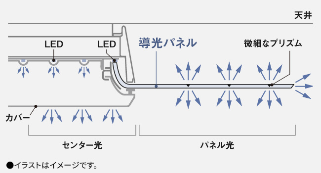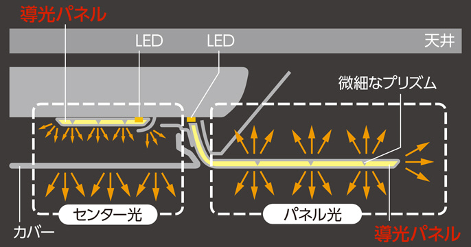 2.センター光とパネル光の点灯・消灯の切り替えで、多彩なあかり空間を演出