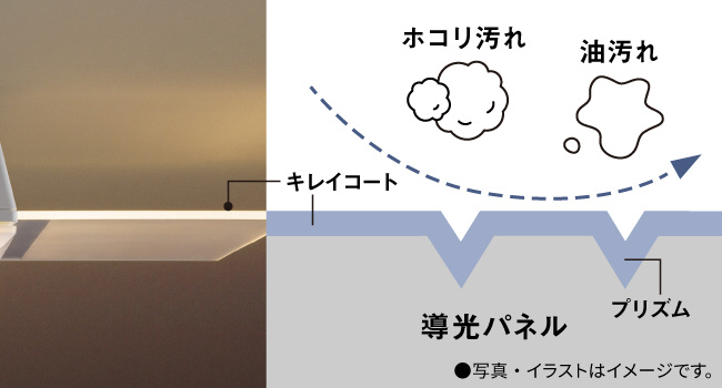 1.ホコリが溜まりにくく、お手入れラクラク キレイコート搭載 2.センター光とパネル光の点灯・消灯の切り替えで、多彩なあかり空間を演出 3.上下左右に光が広がりお部屋の広さ感がアップ 4.消灯時もお部屋に馴染む スタイリッシュなデザイン 5.小さな文字もくっきり読みやすい「文字くっきり光」搭載