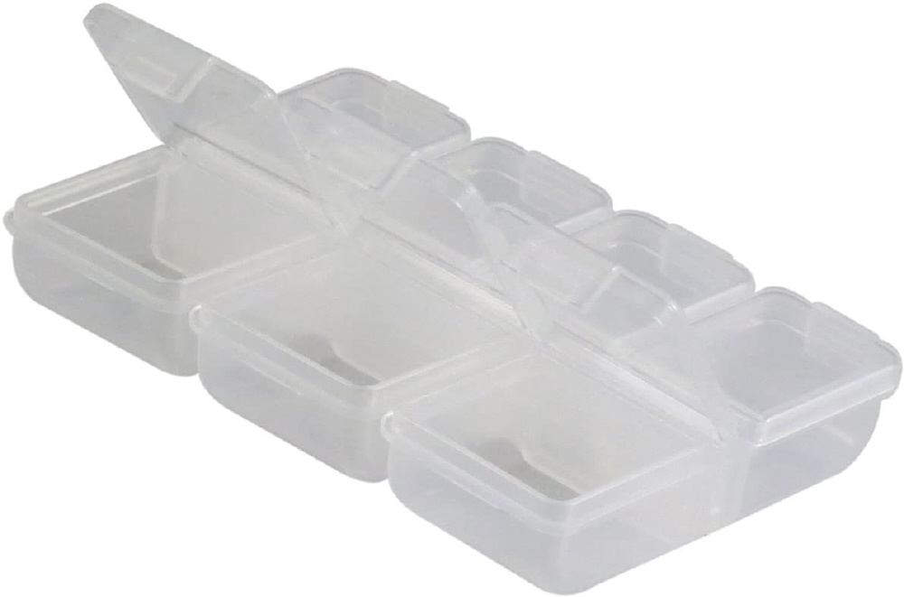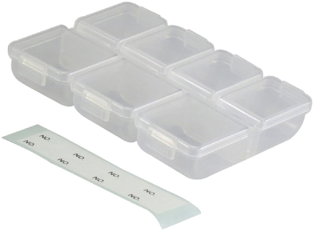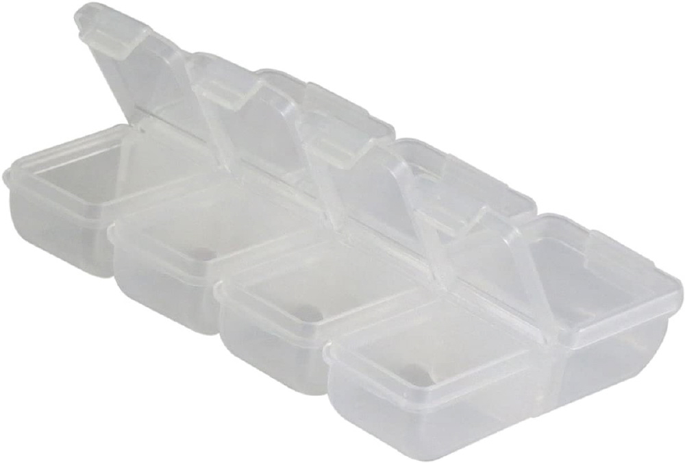 7コマタイプの小物ケース。1週間分のサプリメントや薬を収納可能!。アクセサリーや釣具、文具などの収納に!。
