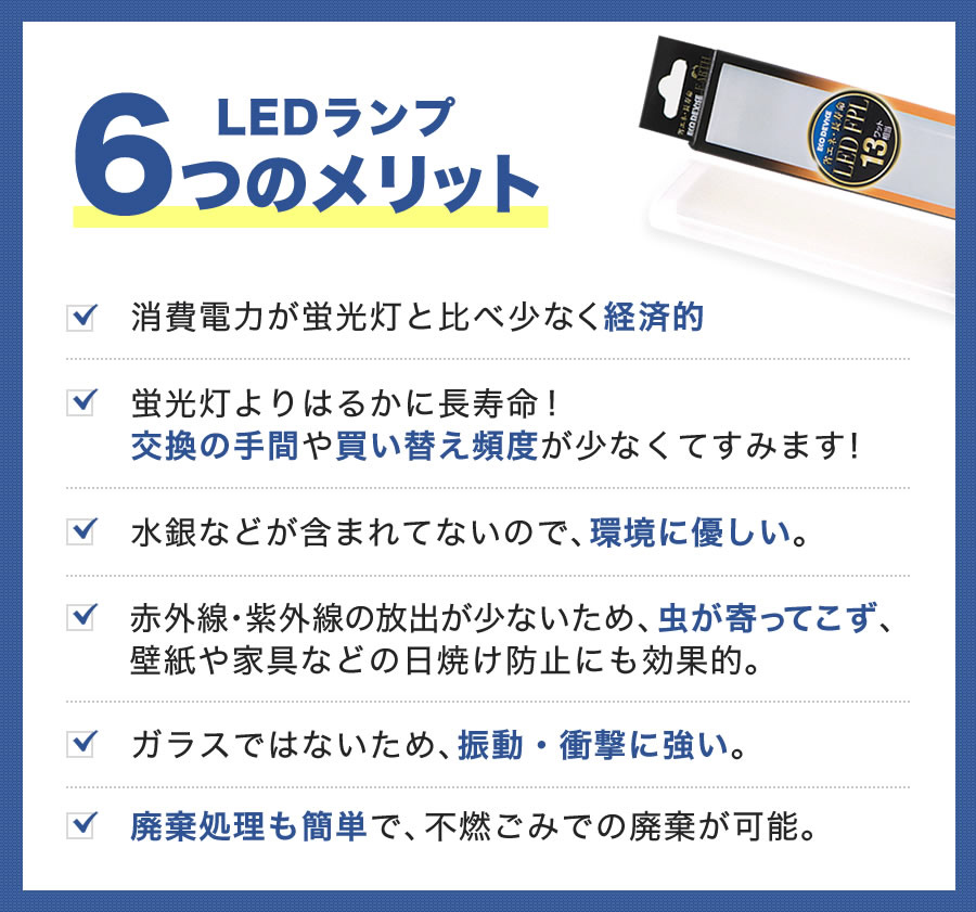 そのまま簡単に取り替えできる、LEDコンパクト形蛍光灯です。
