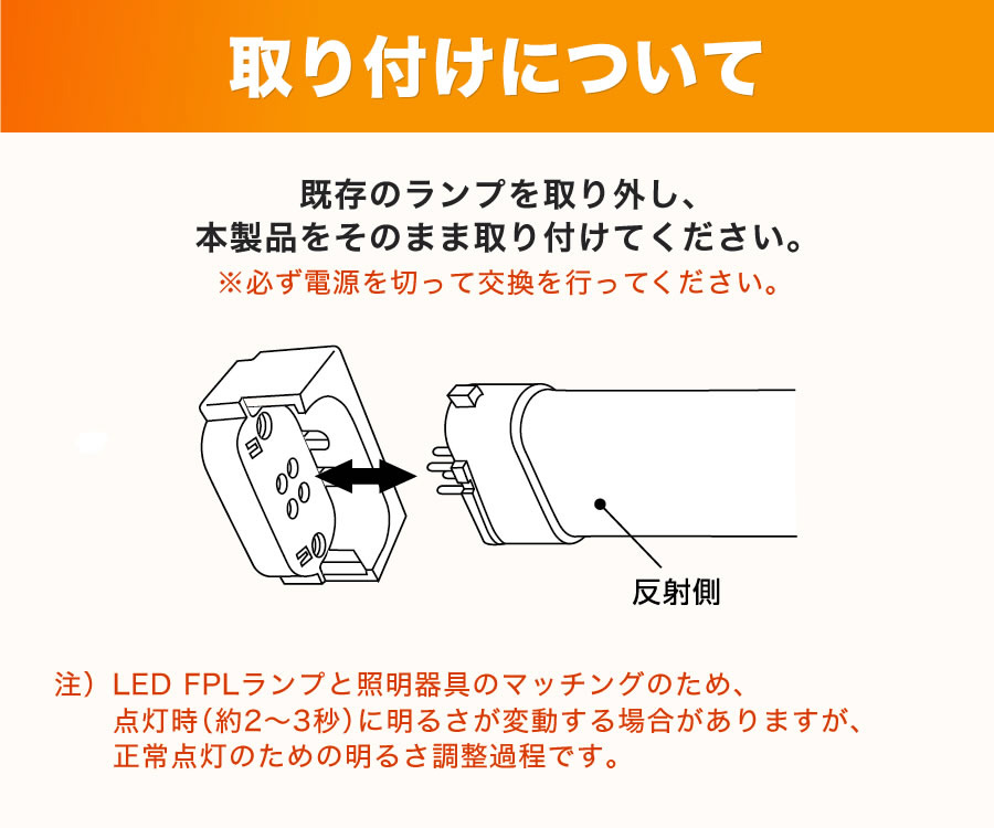そのまま簡単に取り替えできる、LEDコンパクト形蛍光灯です。