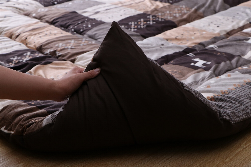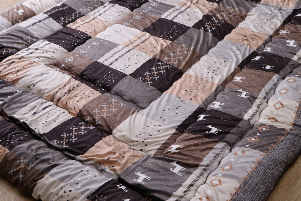 かわいらしいギャベ柄プリントの大判こたつ厚掛ふとんです。