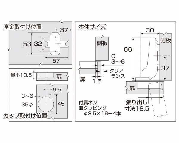 家具・タンスの蝶番(丁番)シリーズ