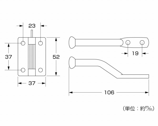 ■特徴: 内側から扉を閉めるだけで自動で止め金具に掛かり、扉が止まります。外側から開くには受けの可動部にヒモを付け、外側に垂らしておけばヒモを引けば開けられます。(ヒモは販売しておりません)