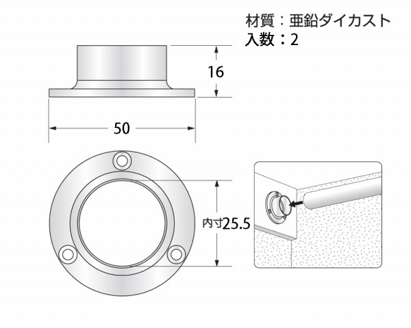 パイプの端部を壁面などに取り付けるための金具です。