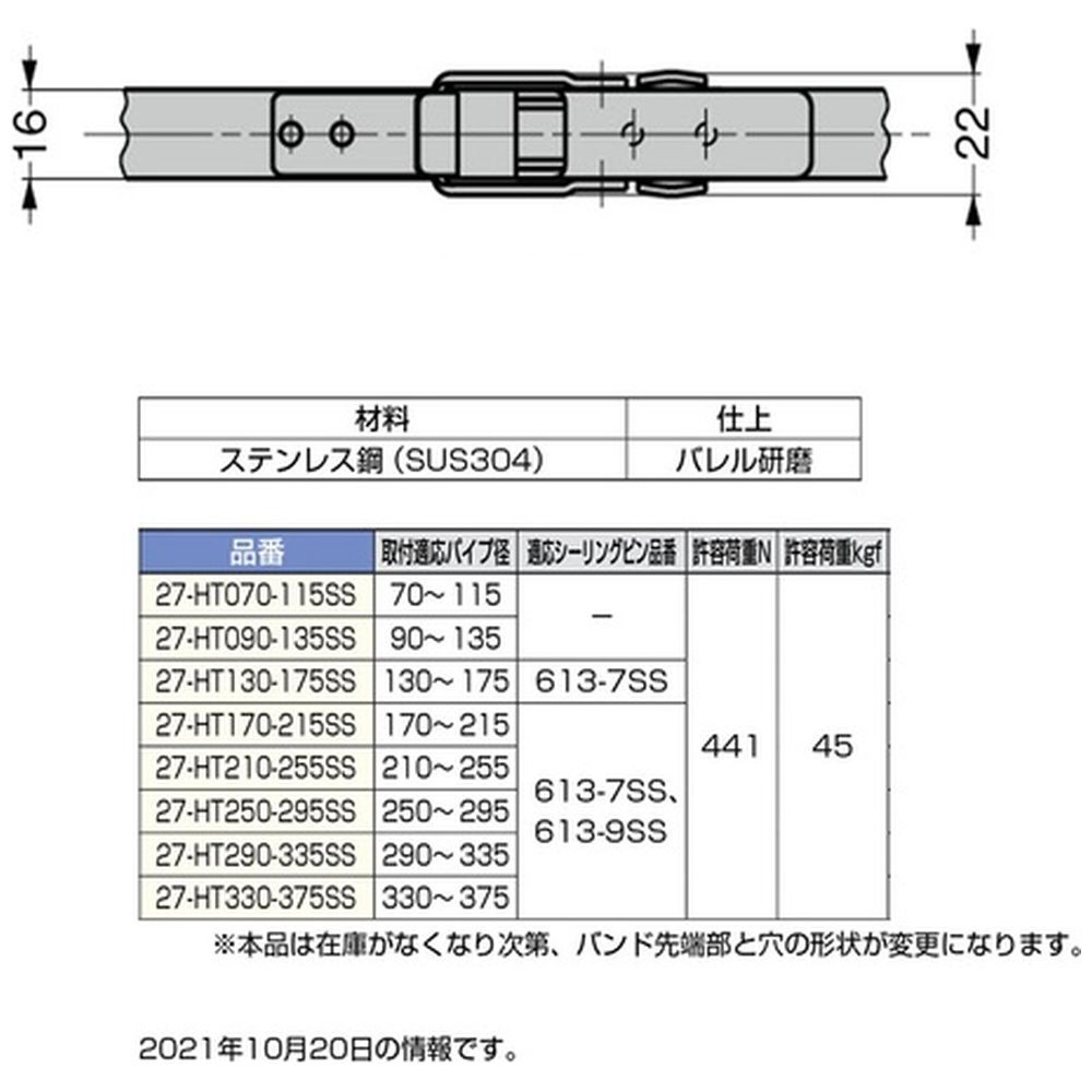 スガツネ工業 (120040439)27−HT170−215SSステンレス鋼製強力バンドクランプ 27-HT170-215SS