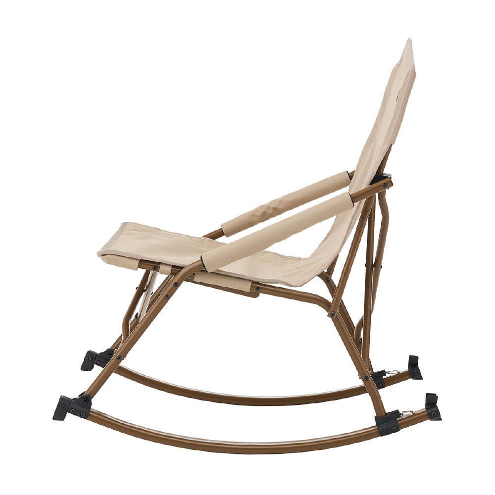 リラックスチェアの代名詞ともいえるロッキングチェアをアウトドア仕様にアレンジ。収束型のチェアにゆらゆら揺れるアーチ状のバーを取りつけることで、持ち運び可能なロッキングチェアにバージョンアップ。さらに収束型で設置も撤収もスピーディー。サッと開くだけでリラックスタイムをお楽しみいただけます。★耐荷重120kg