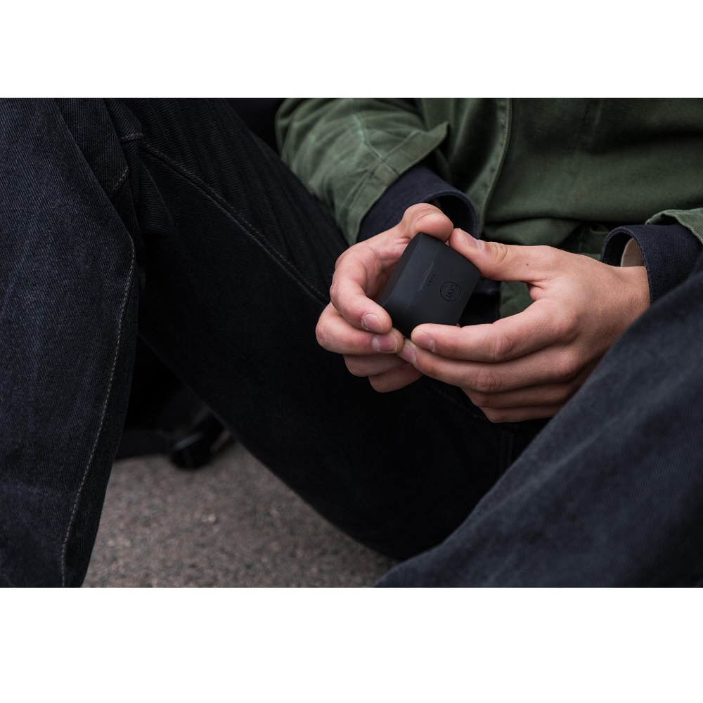 1 回の充電で最大 4.5 時間再生が可能で、ポケットサイ ズの充電ケースにより 3 回の追加充電によって合計18時間の連続再生時間を実現しました。防滴性能 IPX5 レベ ルに対応することで雨や水分から本体を保護することでリ スニング環境を選びません。