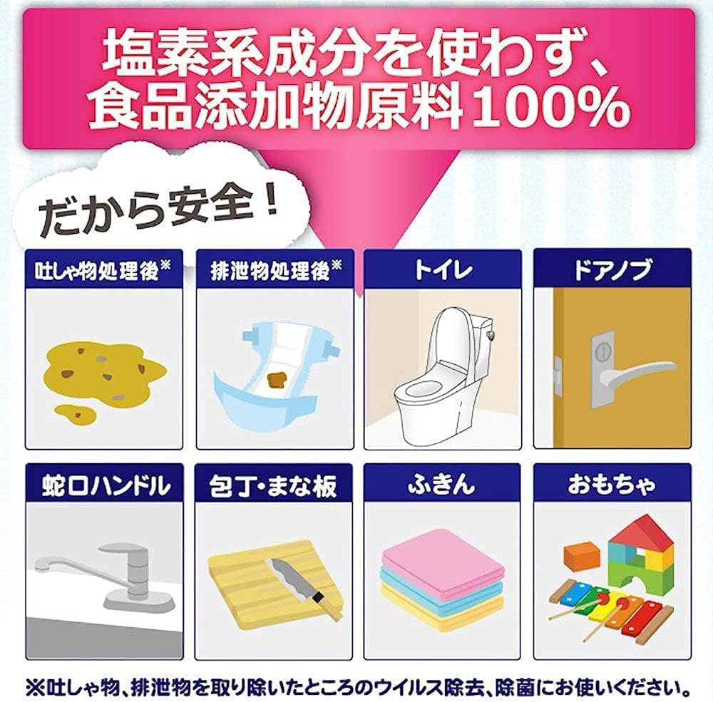 ● 塩素や殺菌剤を使わず、100%食品添加物原料のみ使用。小さなお子様やペットがいるご家庭でも安心。