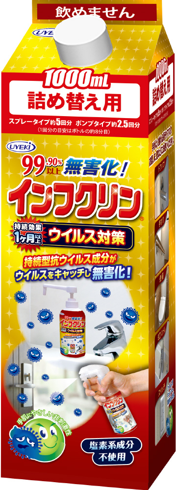 非塩素で持続型抗ウイルス成分がウイルスをキャッチし、無害化。1ヵ月以上効果持続!手指・物に使える!大容量の詰替え用紙パック