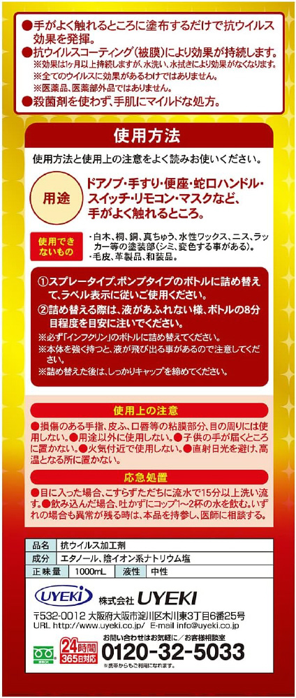 ●手指や手がよく触れるところに塗布するだけで抗ウイルス効果を発揮。