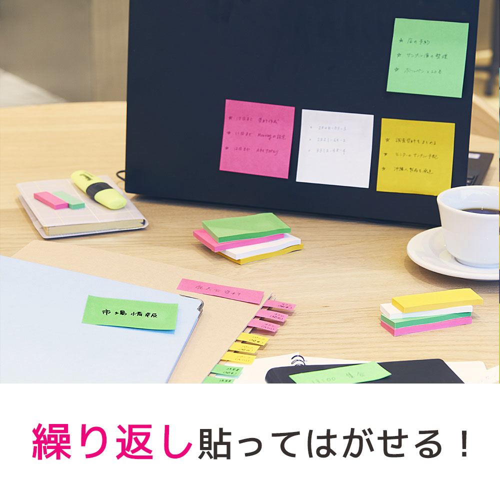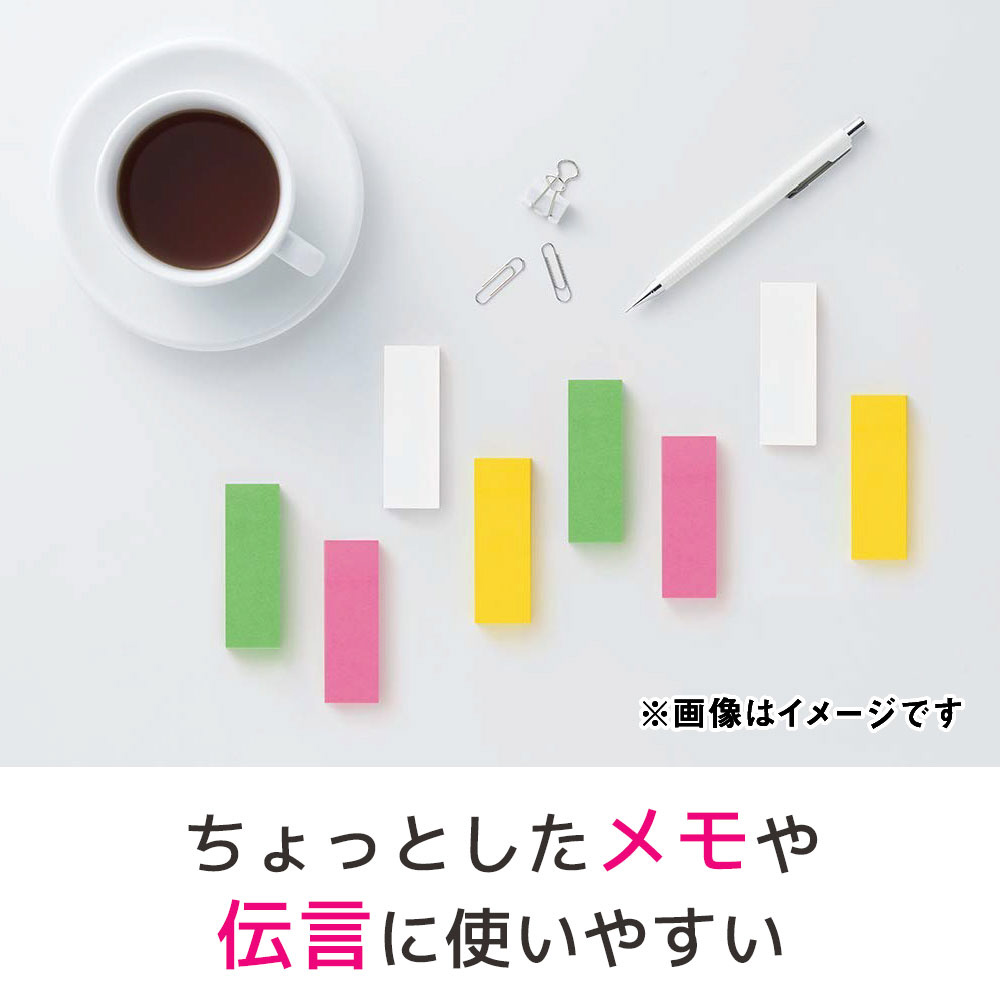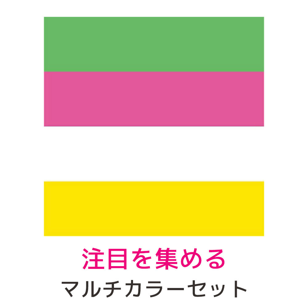 縦75ミリ×横25ミリサイズのふせんです。フラッターをテーマに注目を集める色、自己主張を演出したり、考えにメリハリを付けたい時におすすめなビビットな色の取り合わせです。