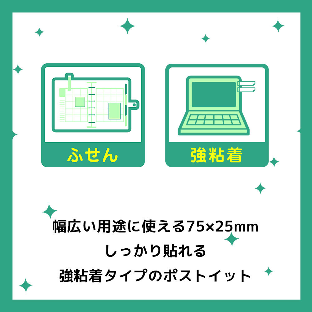 縦75ミリ×横25ミリサイズのふせんです。