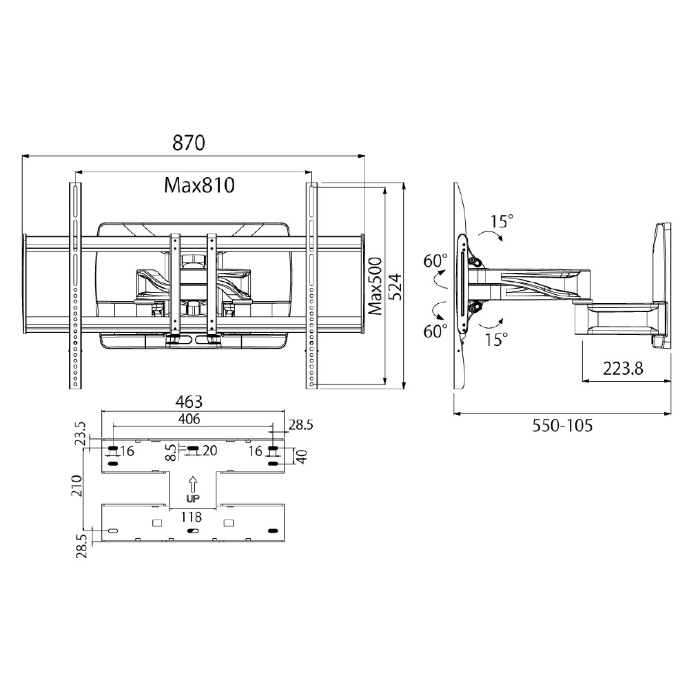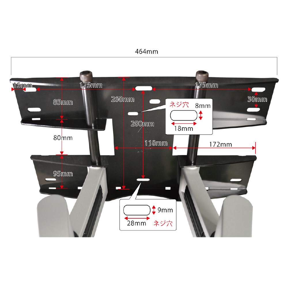 ・モニター背面のネジ穴の間隔が「縦:100〜500mm 横:150〜810mm」の範囲内である事