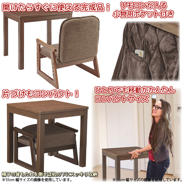 ・サイズ: [こたつ]W69×D55×H38(57)cm、[椅子] 約51×43×58(54.8/51.6)cm