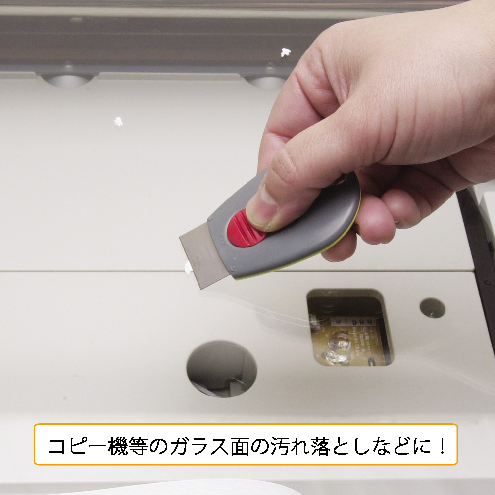 ●コピー機等のガラス面の汚れ落としなどにはステンレス刃、プラスチック面等の汚れにはプラスチックヘラが最適です。