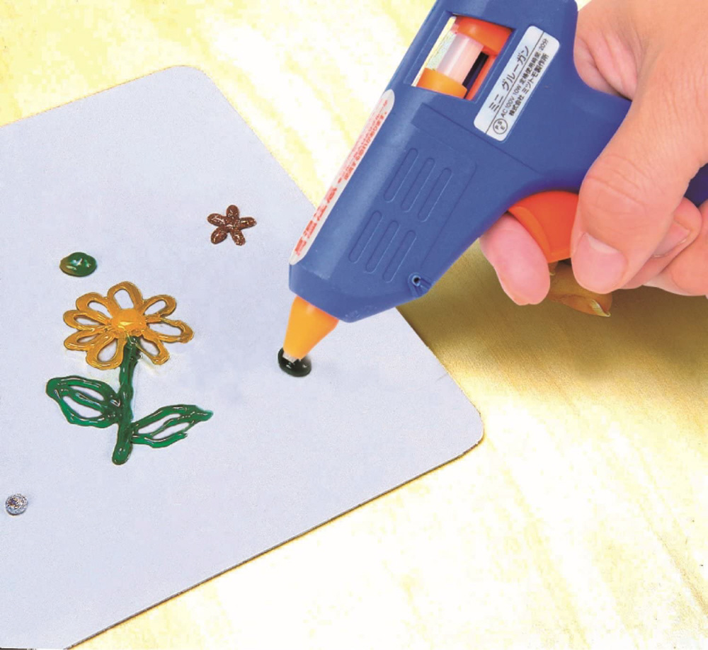 適合可能機種:スティック7.0〜7.5mmの各種グルーガン。家庭用品品質表示法による表示:種類/熱溶融形接着剤 成分/エチレン、酢酸ビニル45.9%、合成樹脂44%、パラフィン10%、顔料0.1% 用途/木、紙、革、布、ガラス、プラスチック、タイル、陶器、石、金属 質量/48g。