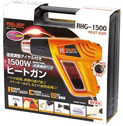 パテの乾燥、樹脂の曲げ加工・ステッカーはがしなどの加熱温風に!。加熱後の冷却に。送風機能付き。温度調整ダイヤル付きです(弱から強)。塩ビ管などの曲げに。塗装・シール・カーペットはがしに。板金などパテの乾燥に。