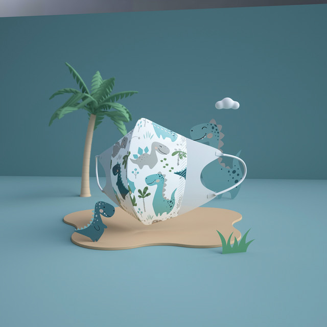 キッズ立体マスク(三層式)10枚入 4歳以上 恐竜