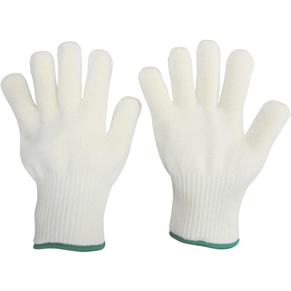 外側に耐熱性・難燃性のあるアラミド繊維、内側には吸湿性のあるコットンの2層構造で熱を伝えにくくかつ蒸れにくい手袋です。