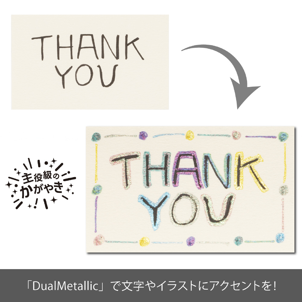 白い紙では鮮やかに、黒などの濃く深い色の紙ではグリッターの輝きがきわだち幻想的に、1本で多彩な表現をお楽しみいただけます。